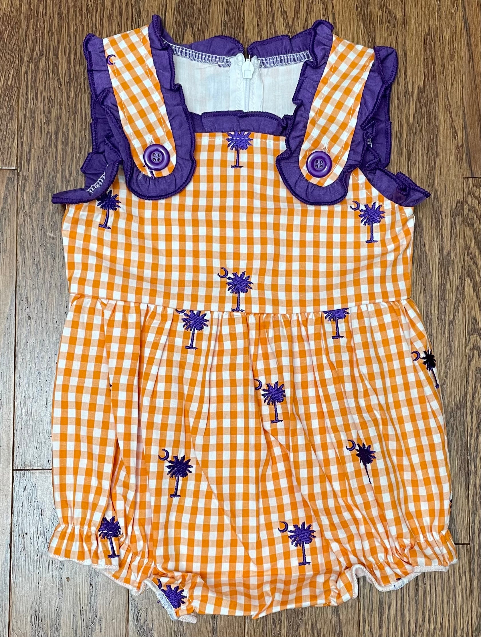 Embroidered Orange and Purple, Clemson, Palmetto Tree Girl Bubble